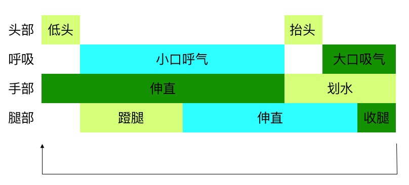• 先划手,后收腿,先伸胳膊后蹬腿。